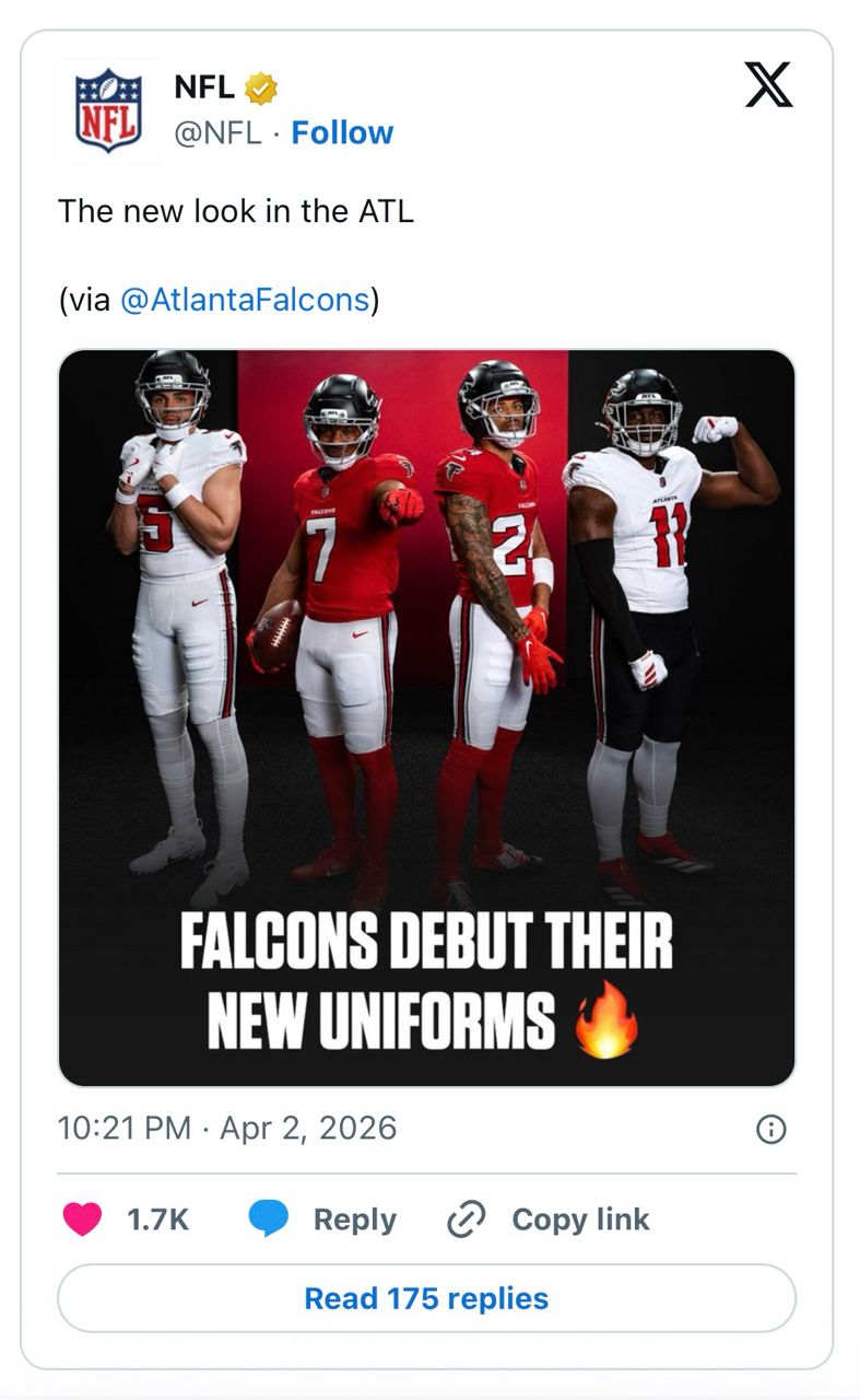 雜文的最後,來分享NFL另一隻鷹系球隊—獵鷹的球衣發表吧!