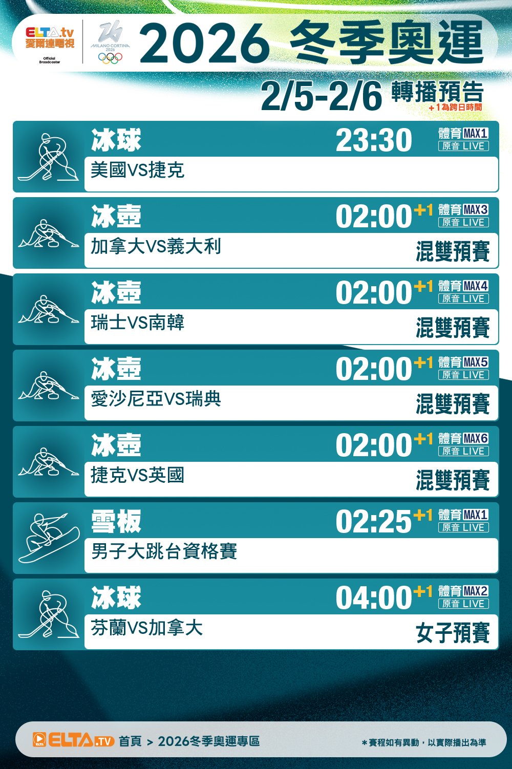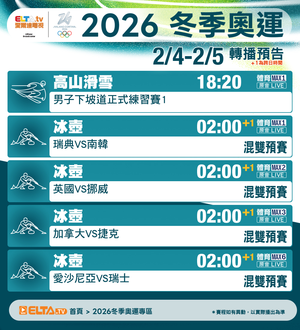 [奧運] 米蘭冬奧 愛爾達 2/4-2/6轉播預告