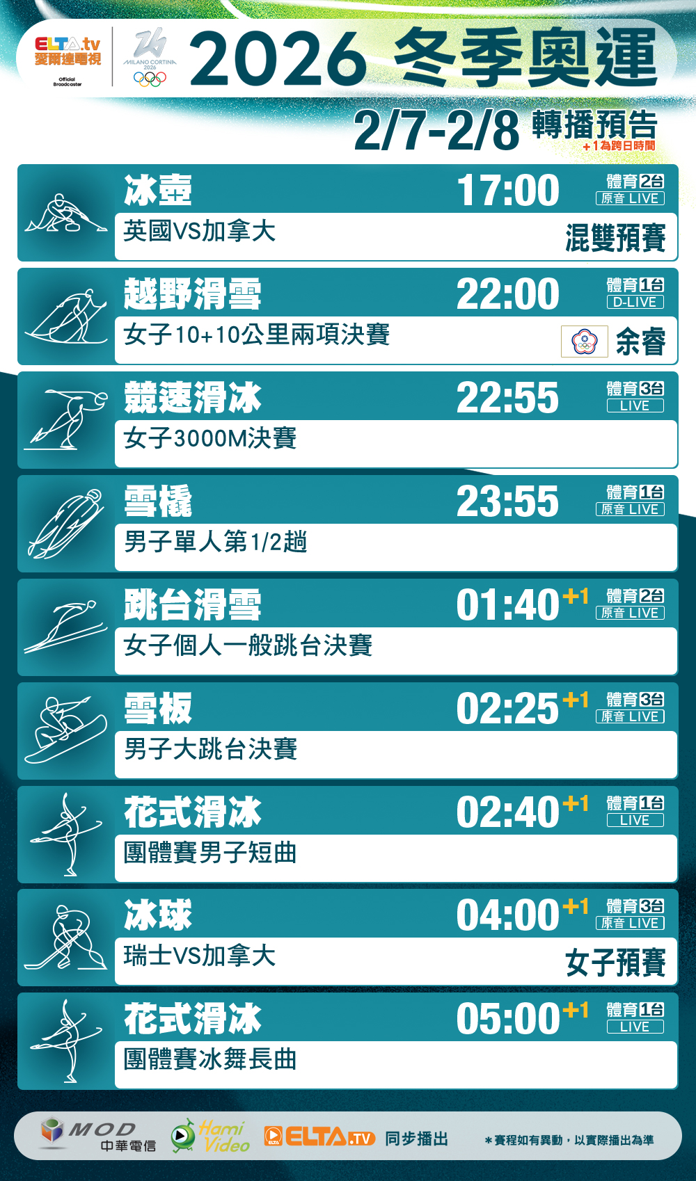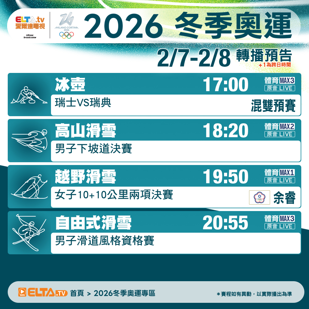 [奧運] 米蘭冬奧 ELTA 2/07-08 轉播預告