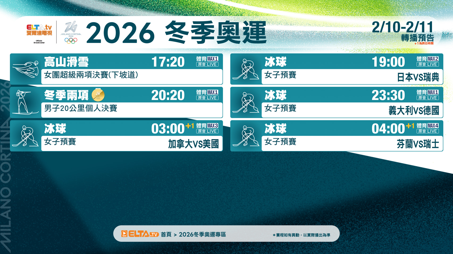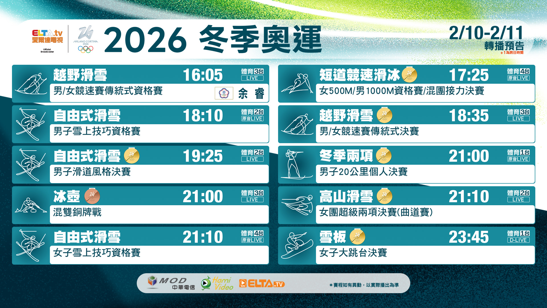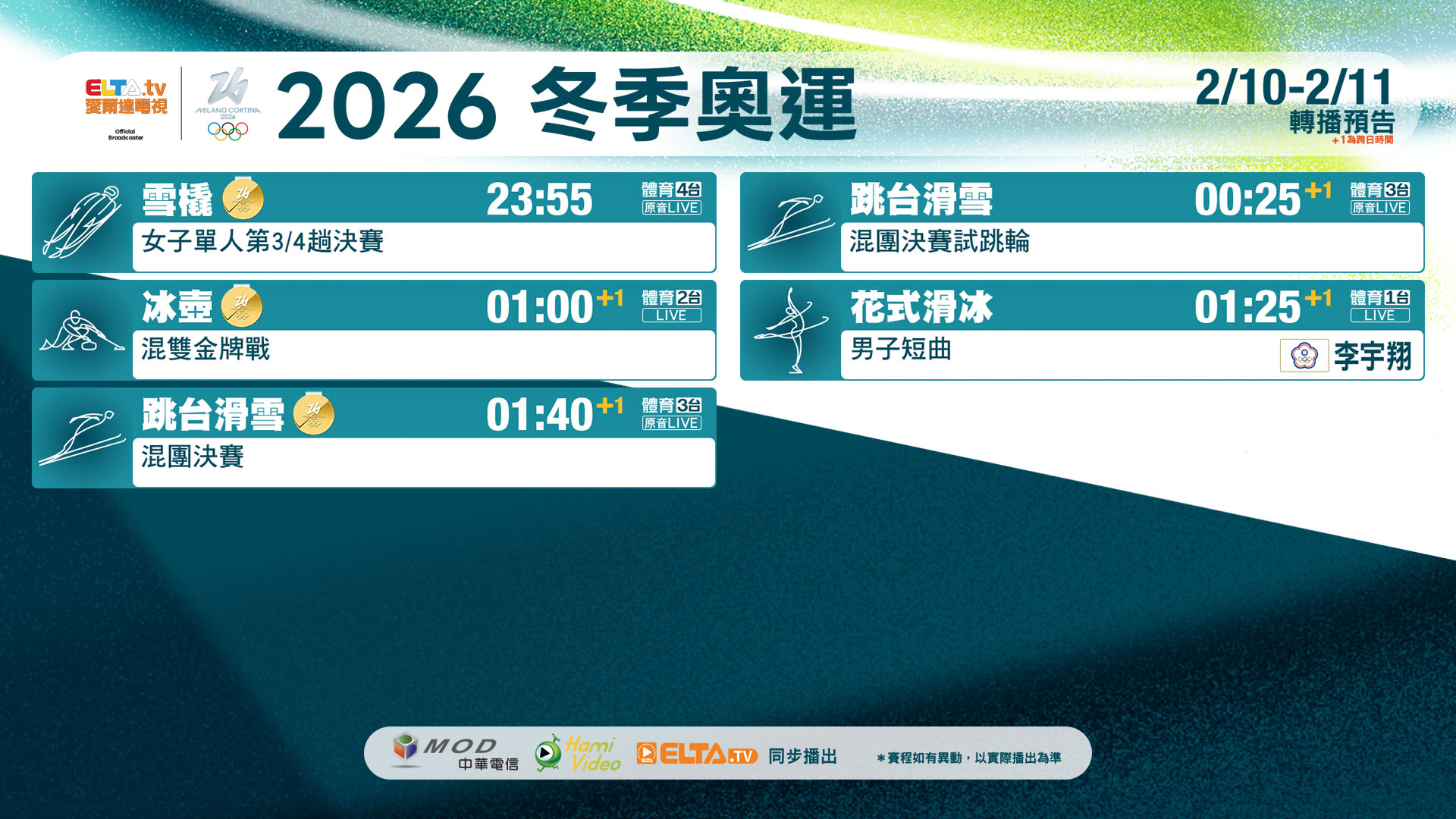 [奧運] 米蘭-科爾蒂納冬奧 ELTA 2/10-11 轉播預告