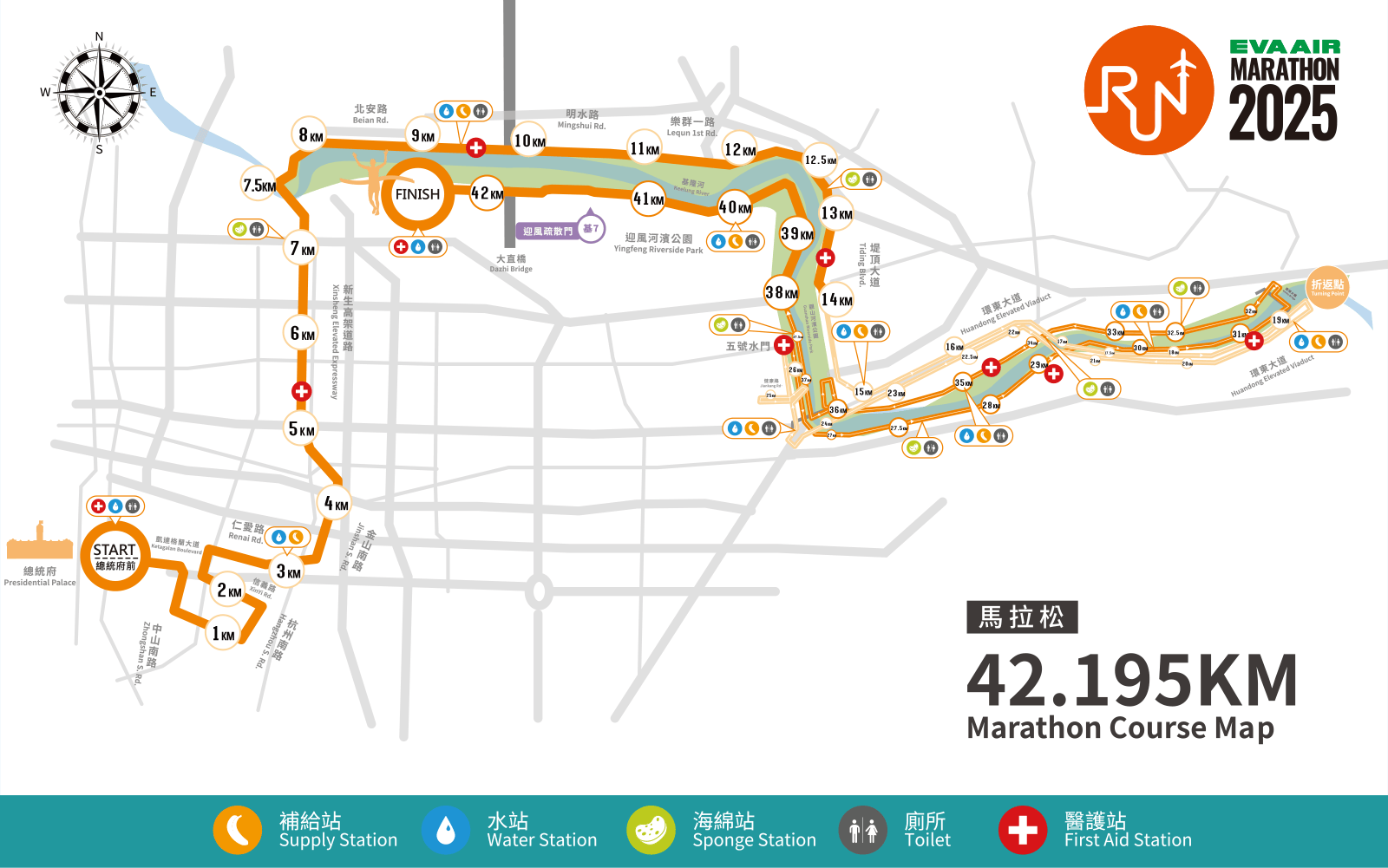 長榮馬官方給的全馬路線圖中,大約在16.5K處有一個海綿站,