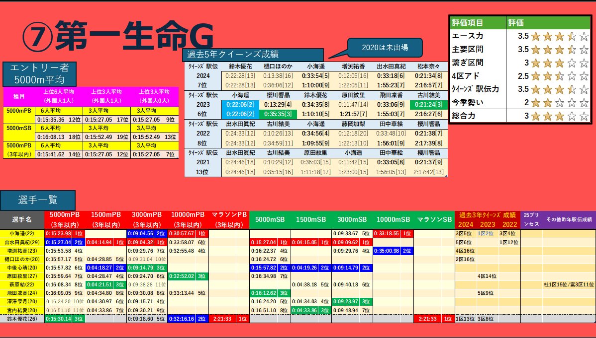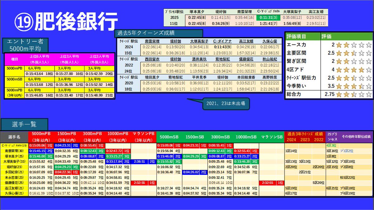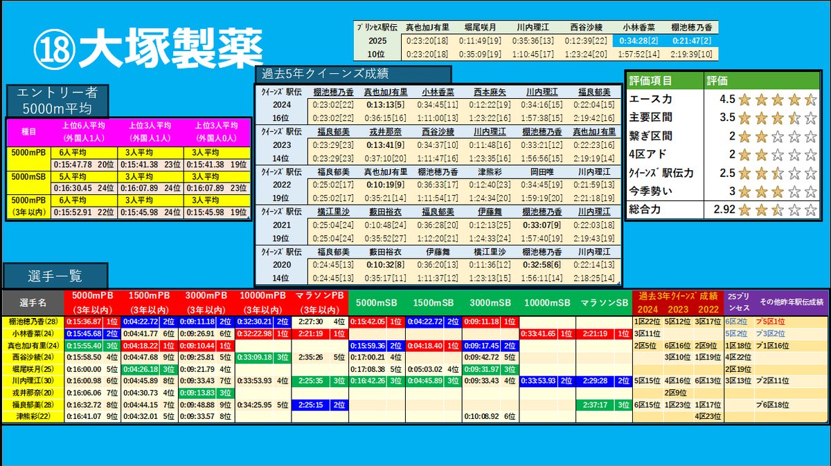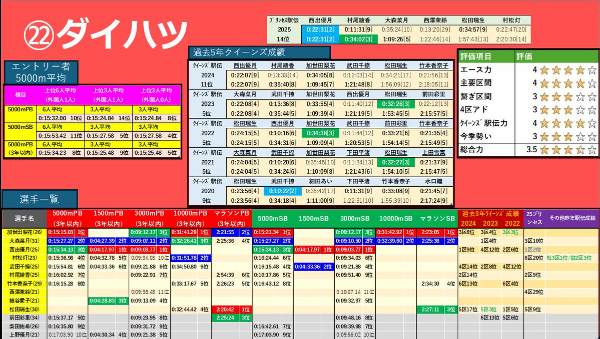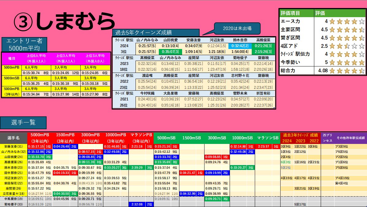 クイーンズ駅伝 チームごと戦力分析全24チーム