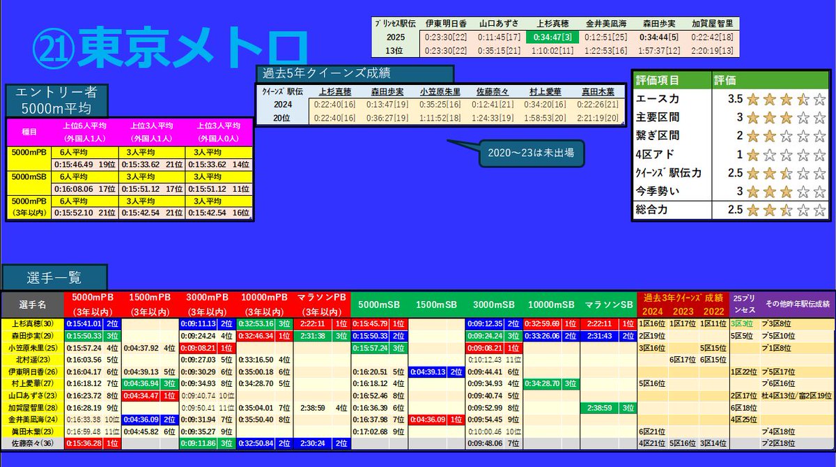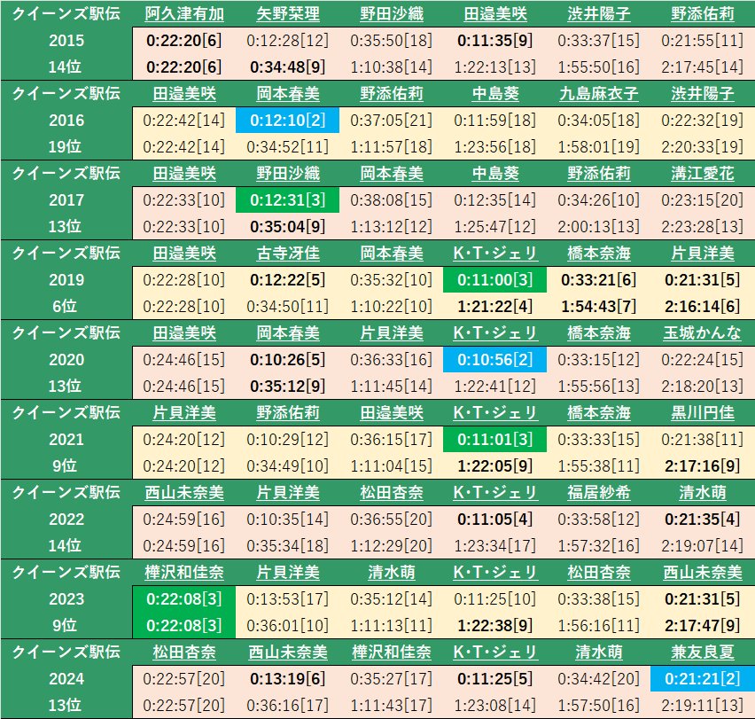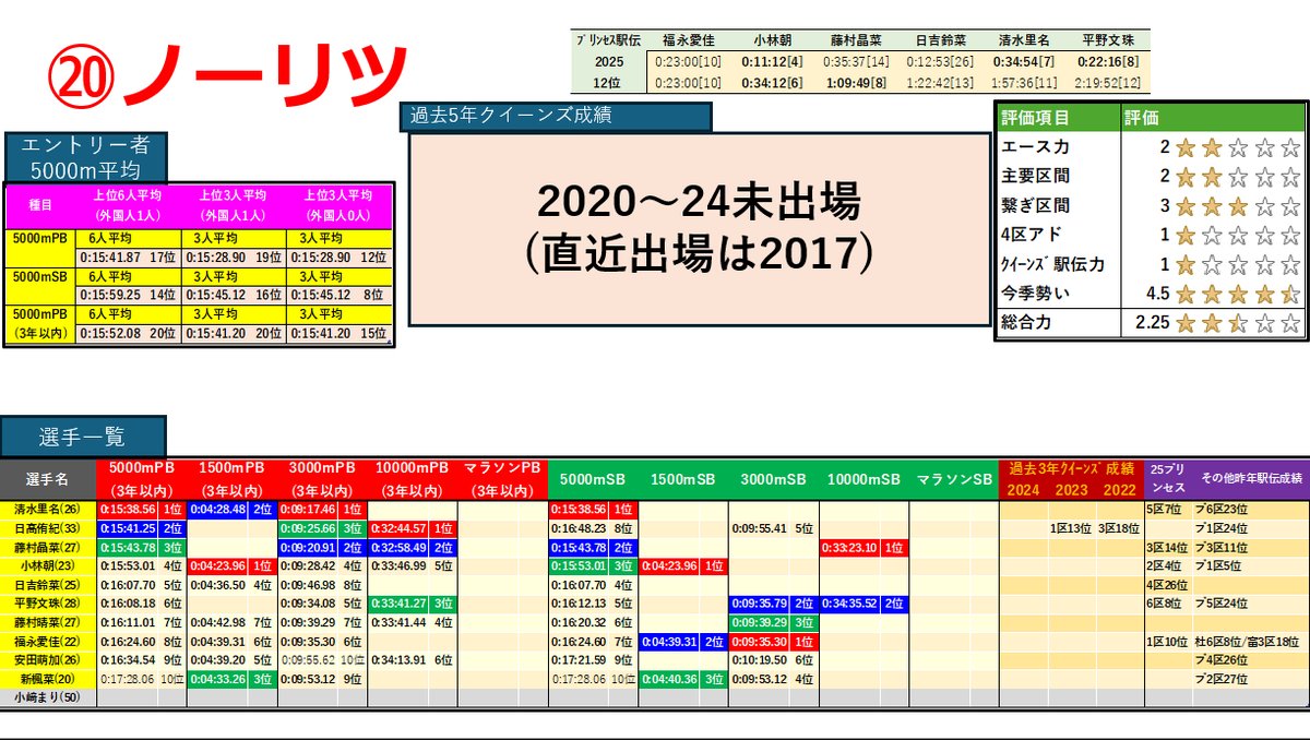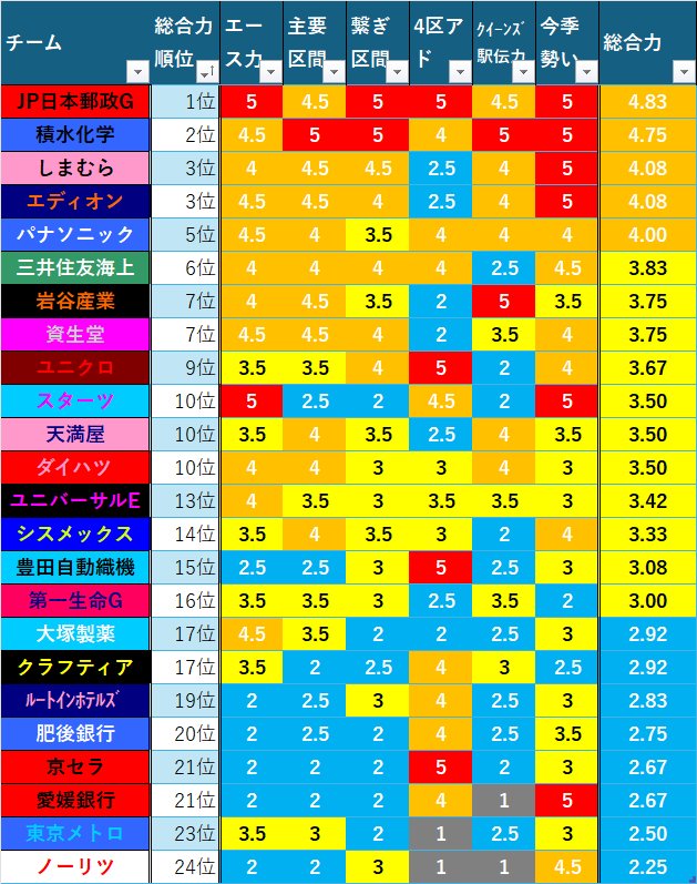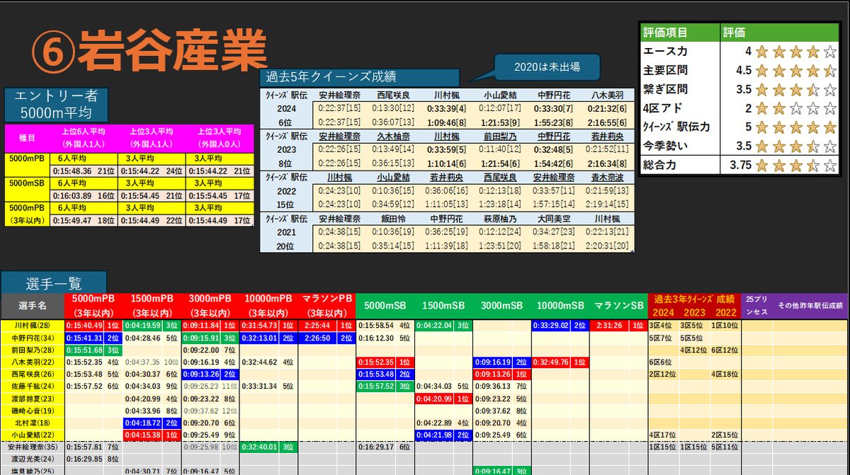 クイーンズ駅伝 チームごと戦力分析全24チーム