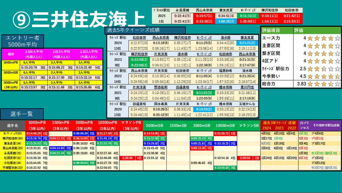 在全國統一預選賽(Princess Ekiden)中,三井住友海上的所有選手都跑進各自區間的前