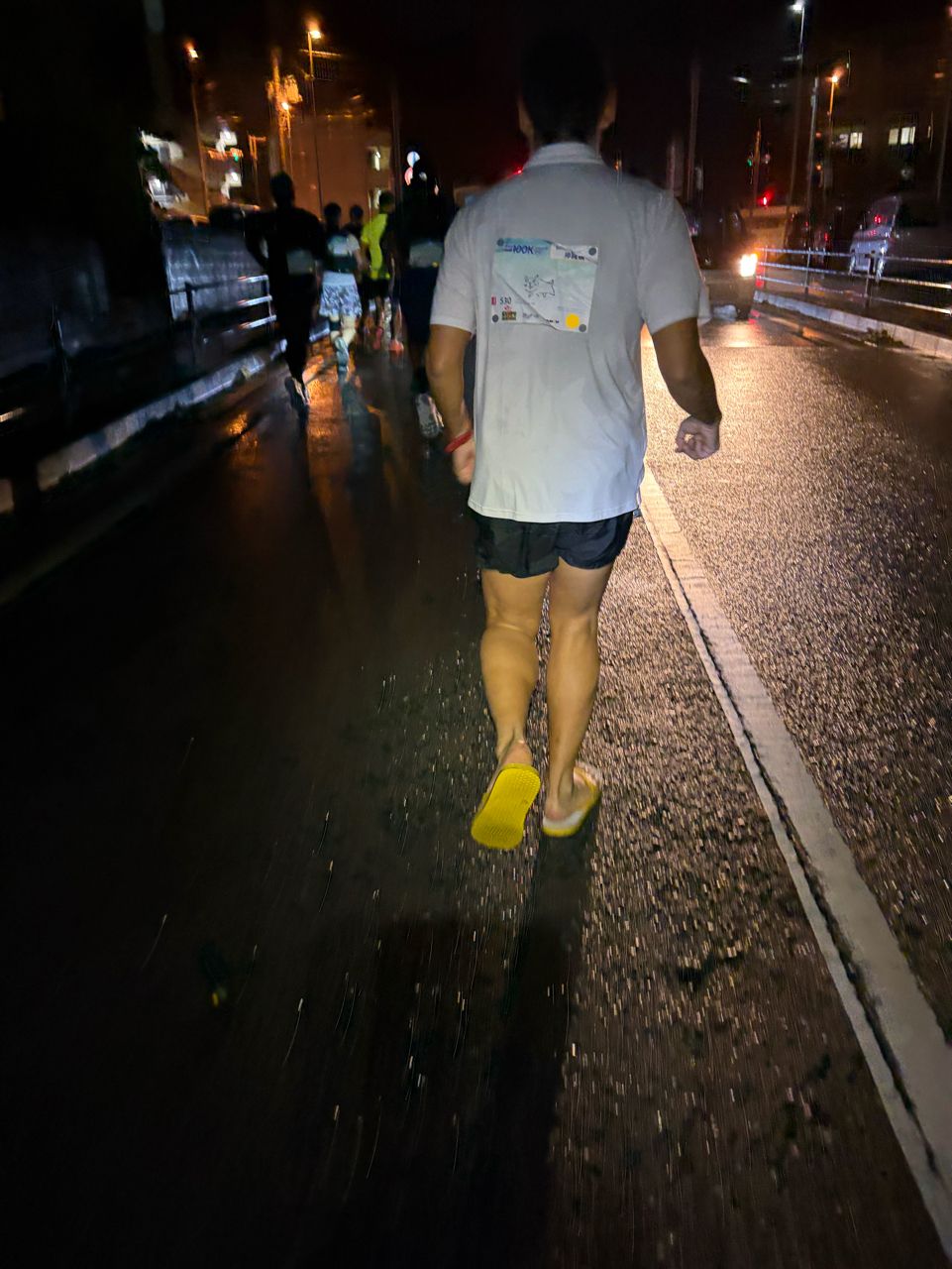 跑過程中有跑者穿夾腳拖鞋跑,沒穿襪子,那拖鞋不是跑步的Y拖...真的是武林高手