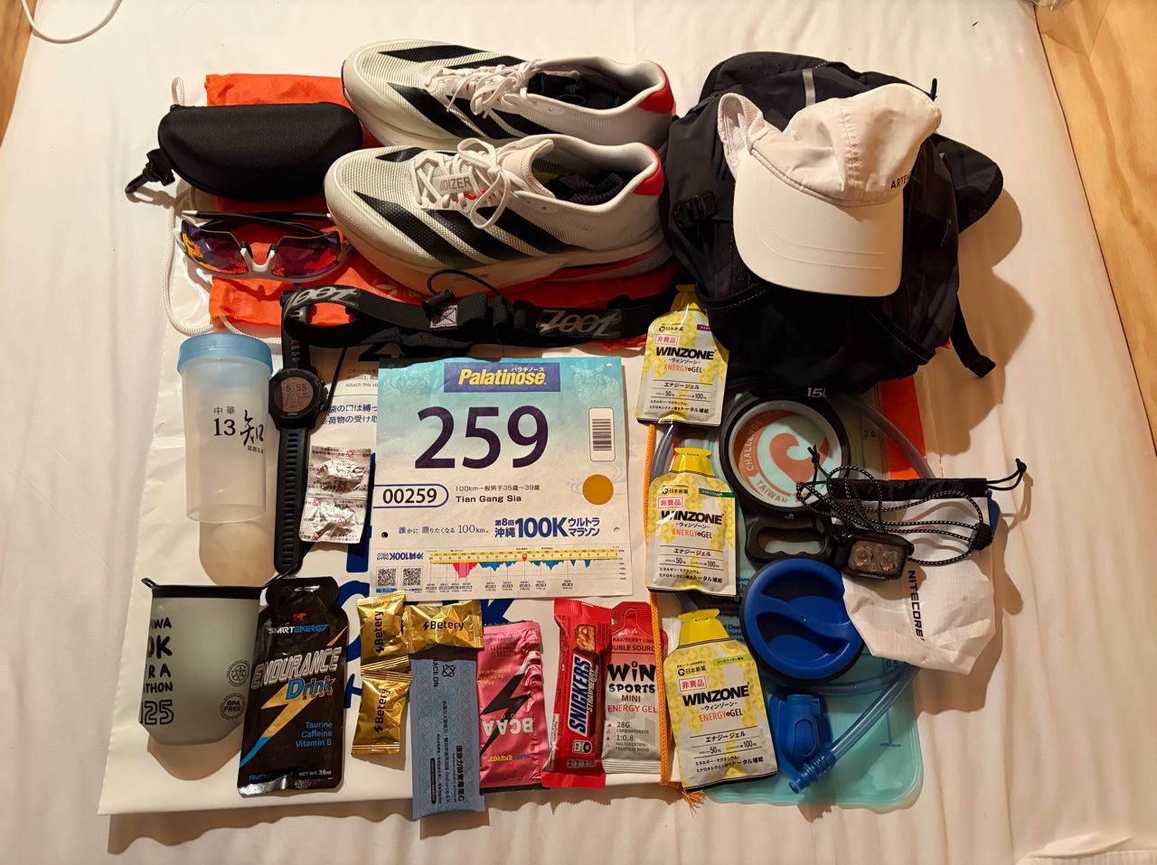 賽前一晚拍一張儀式感,頭燈要帶比較好,因為起跑時天還沒亮,至少2個小時需要用到