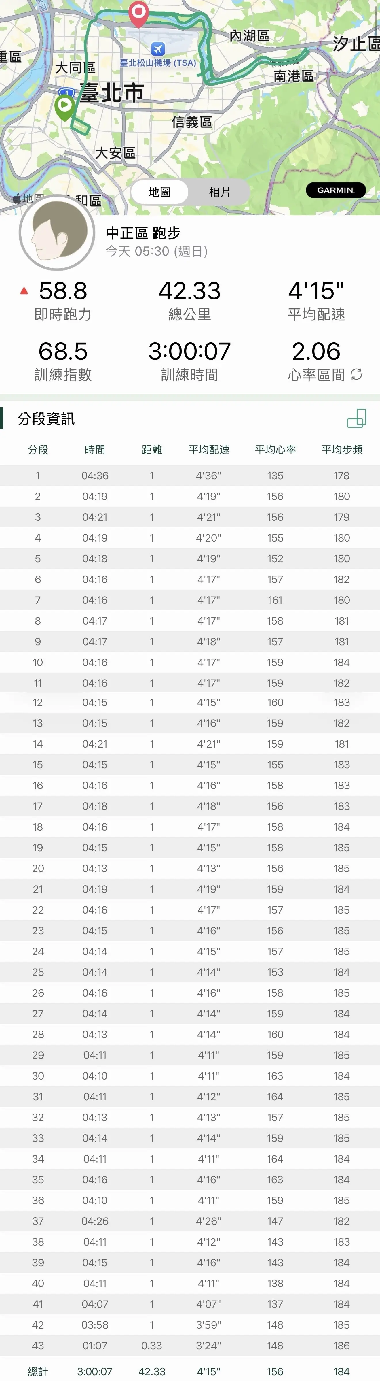 配速都很穩定 身體也沒有出現異常