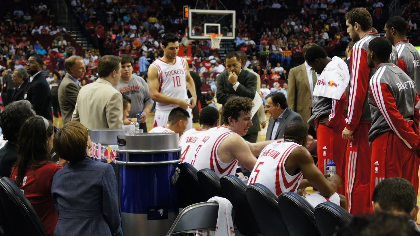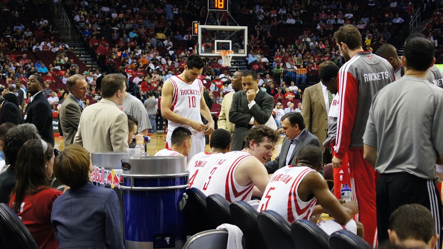 覺。另一邊,比賽結束後,在球員席這邊有一大票穿西裝的人在跟Asik說話,恭喜