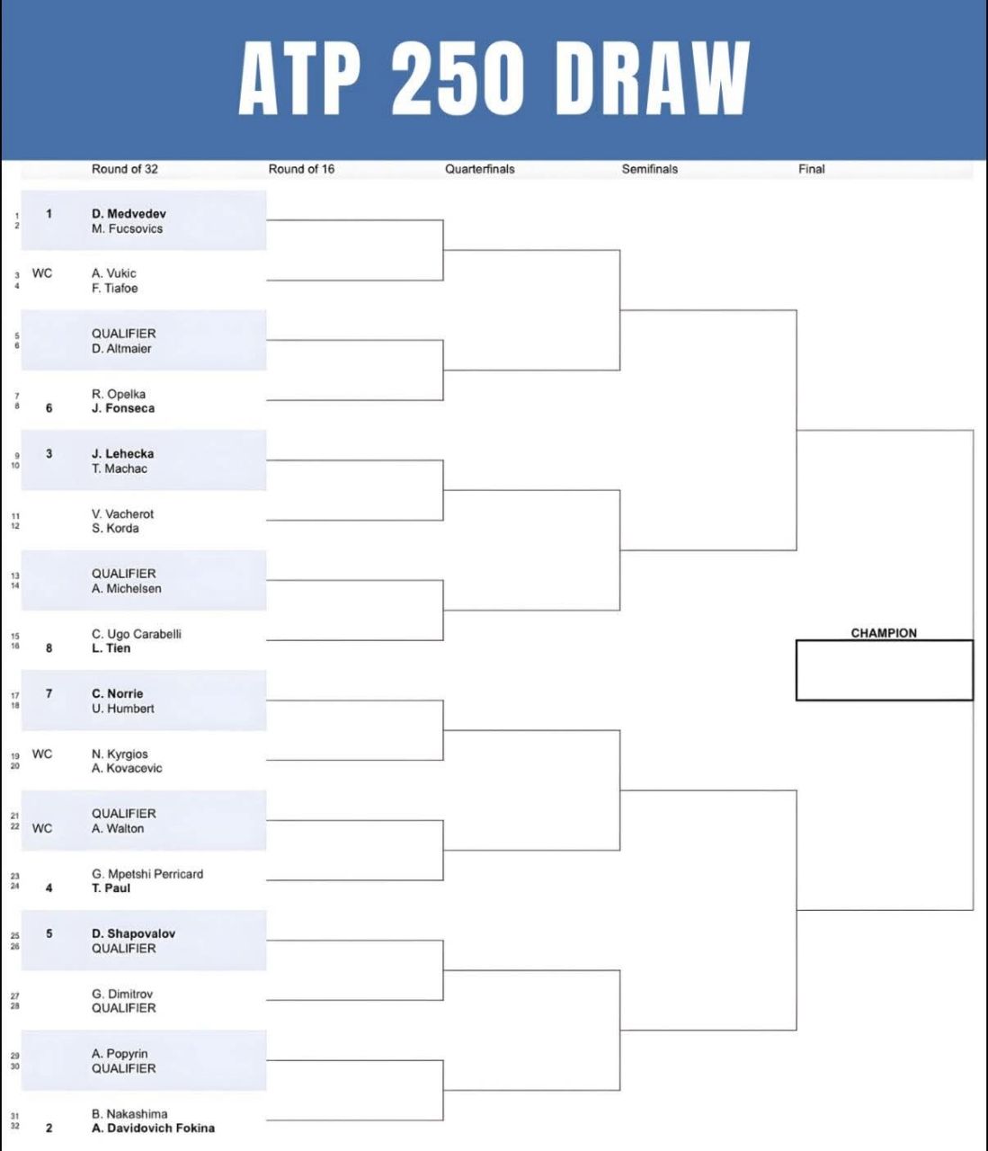 同區種子有2號種子‐來自西班牙的Alejandro Davidovich Fokina。