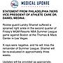 1. 記者Chris Haynes在the jump的節目中提到,七六人是東區唯一一支Kawhi Leonard將會考. 慮續約的隊伍,認為費城真的真的非常有機會。. 2. 球團官方宣布,先前對上賽爾提克的比賽中扭傷右腳踝的Landry Shamet確定缺席剩下的夏季聯盟賽事。. X光檢查雖然呈陰性