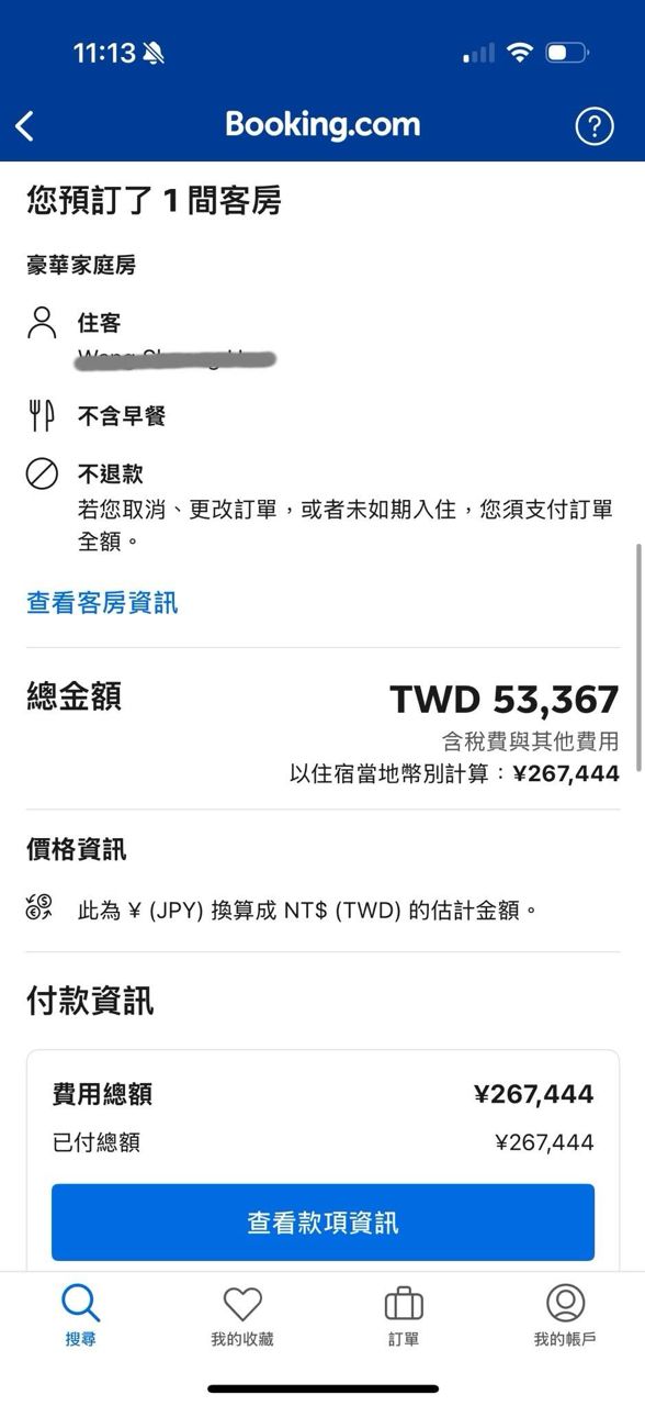 售台幣50000元(原本是在Booking訂房原價是53367元)