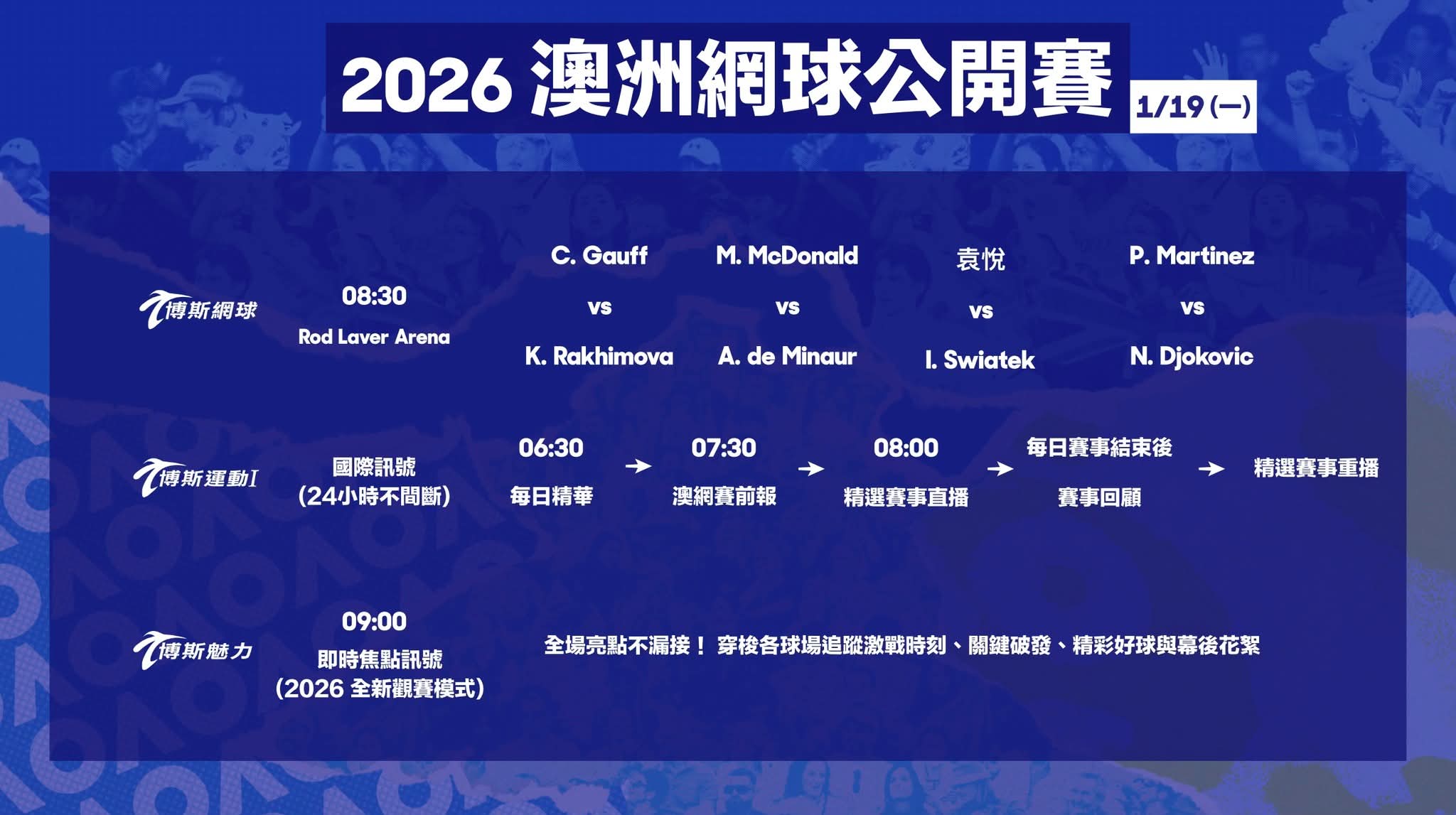 [情報] 2026澳網 台灣轉播預告(1/19)