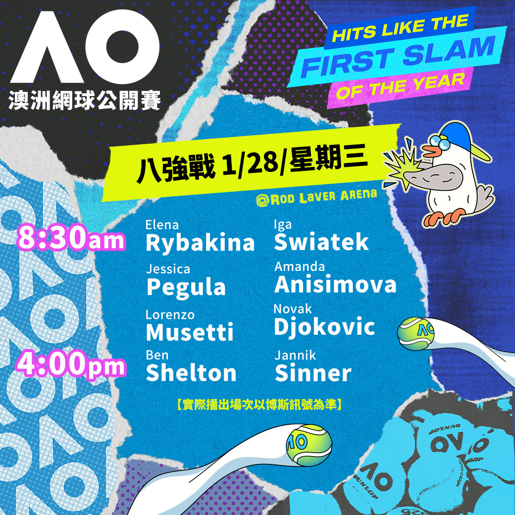 其他球場賽程請見:https://ausopen.com/schedule#!43235