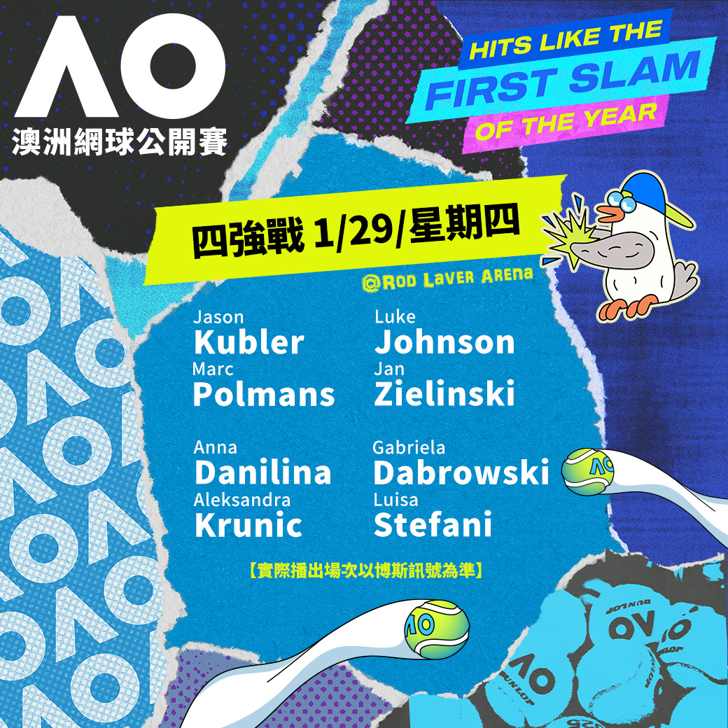 [情報] 澳網 1/29賽程 女單四強/陳冠守+男單3rdRD