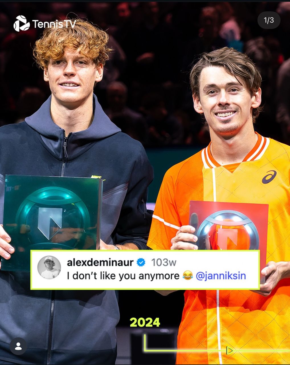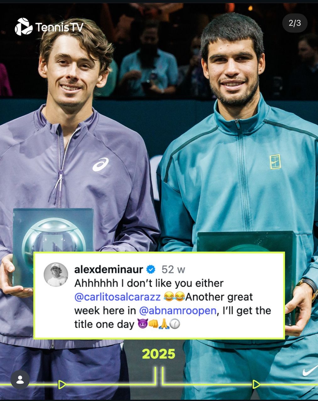 Alex de Minaur前兩年決賽輸給Sinner跟Alcaraz 今年終於拿下冠軍