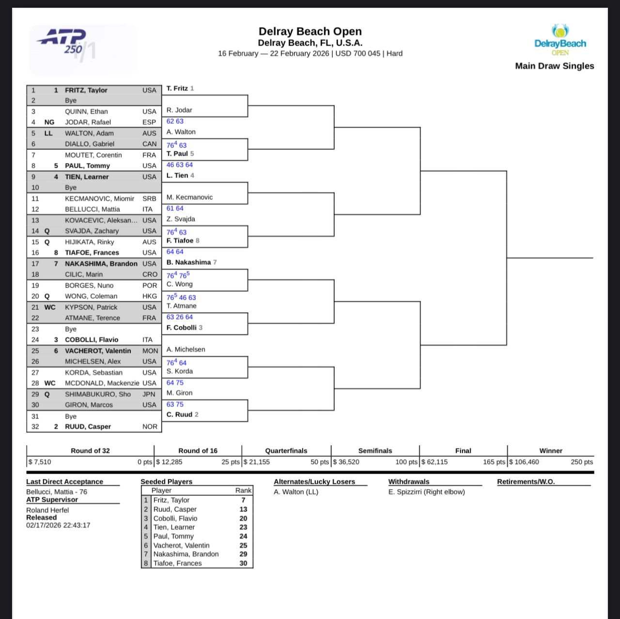 德雷海灘250第一種子第7名