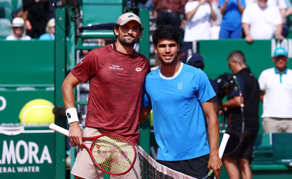 ▲球王艾卡拉茲(Carlos Alcaraz)與瓦舍羅(Valentin Vacherot)。(圖/路透)