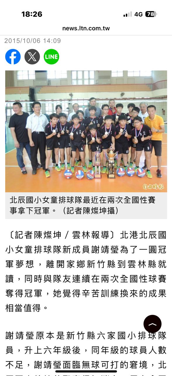 [新聞] 家長下場陪練!北港北辰國小女排逆境奪全國賽冠軍