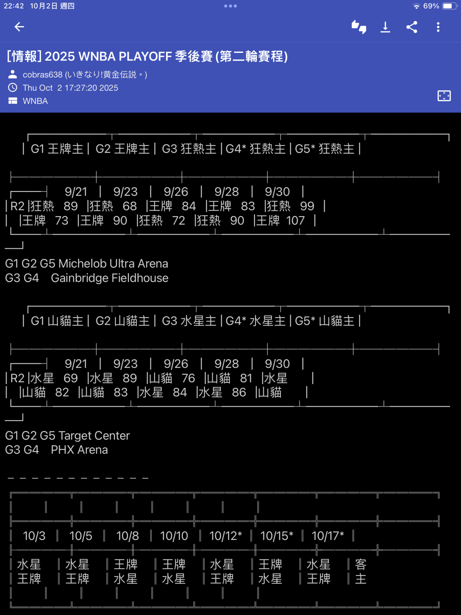 [情報] 2025 WNBA PLAYOFF 季後賽(第二輪賽程)