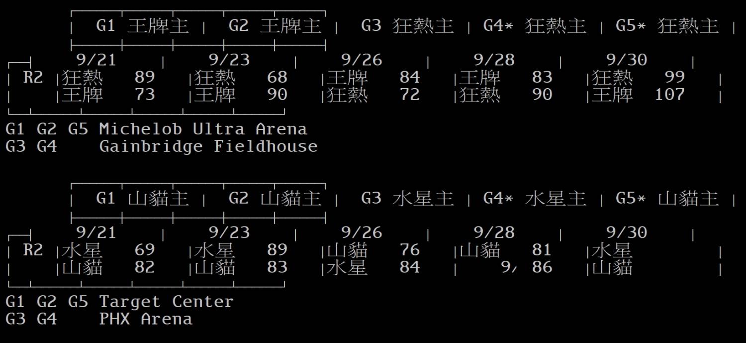 │ R2 │狂熱 89 │狂熱 68 │王牌 84 │王牌 83 │狂熱 99 │