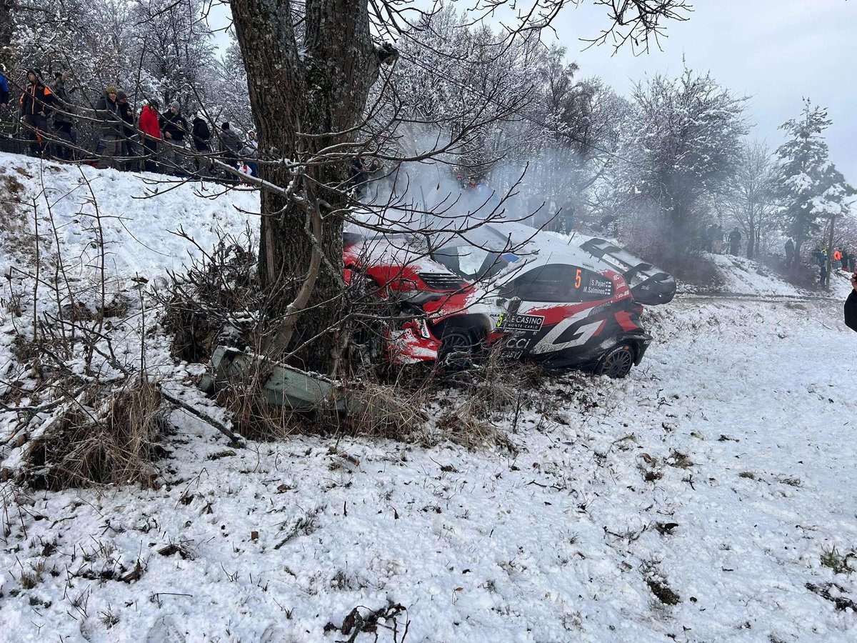 Pajari 於兩公里處左右失控撞樹,後續因車損嚴重宣布退賽