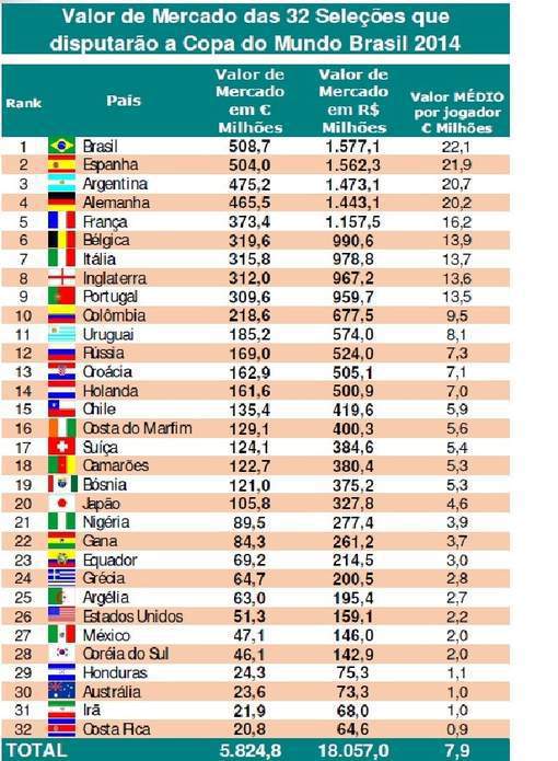 [心得] 2014世足團隊年薪-巴西 西班牙 最高