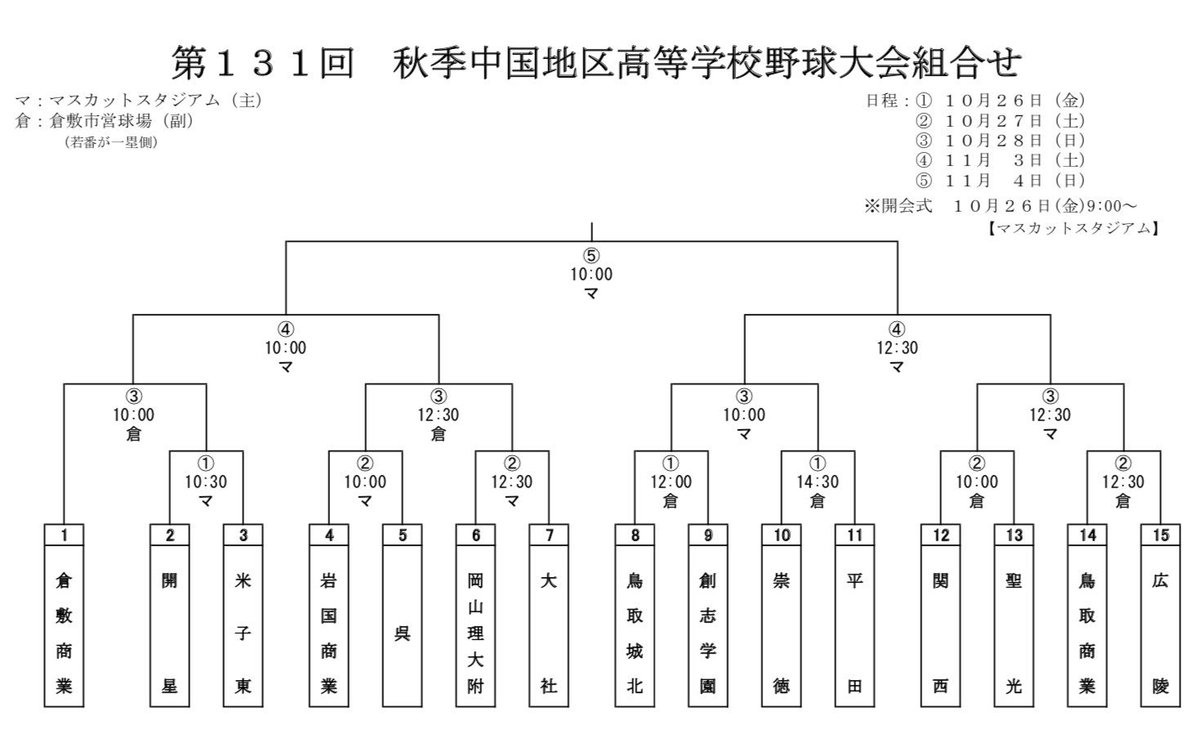 秋季中国大会 日程:10/26~11/4 出場校:16校 開催:岡山