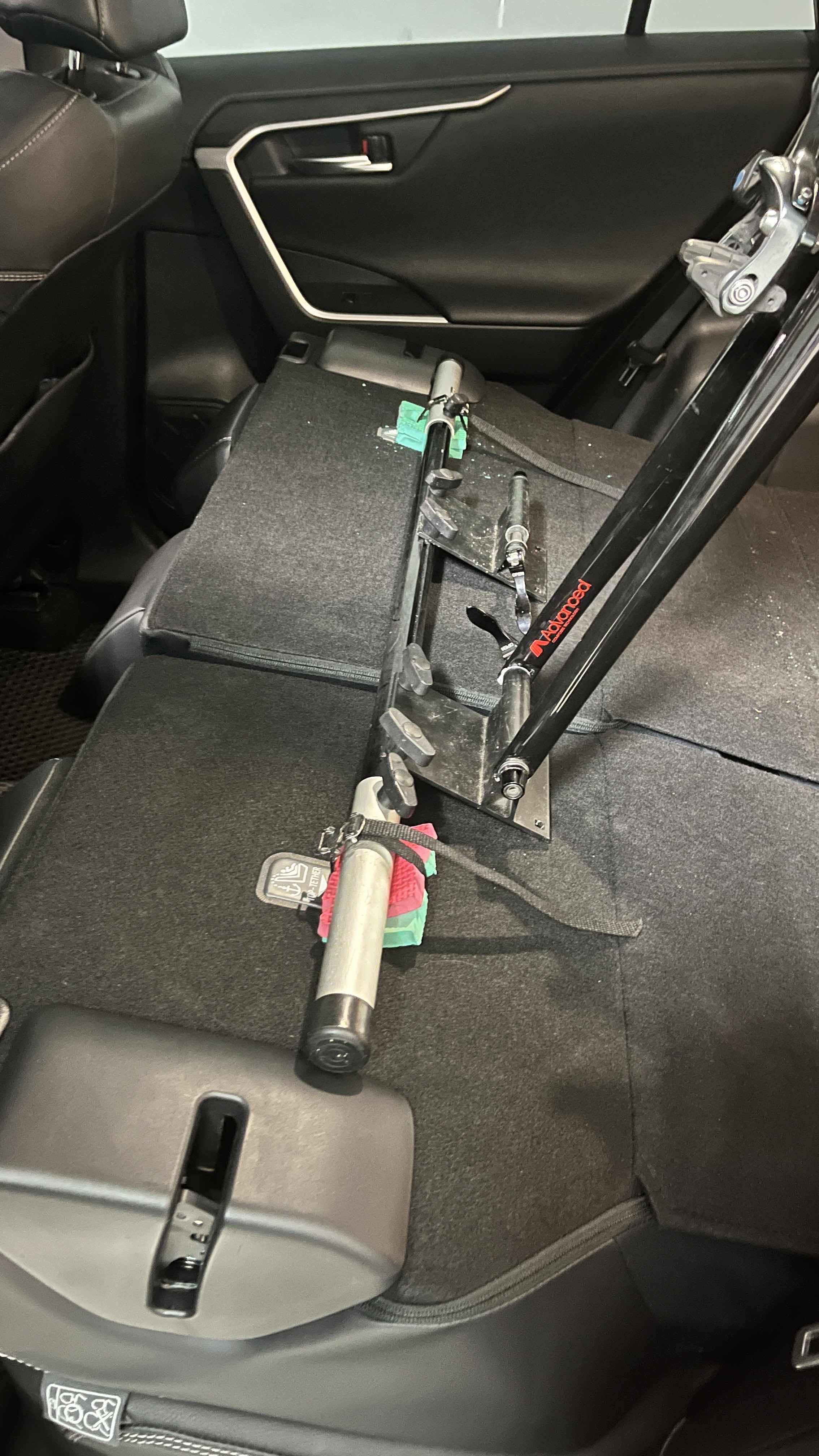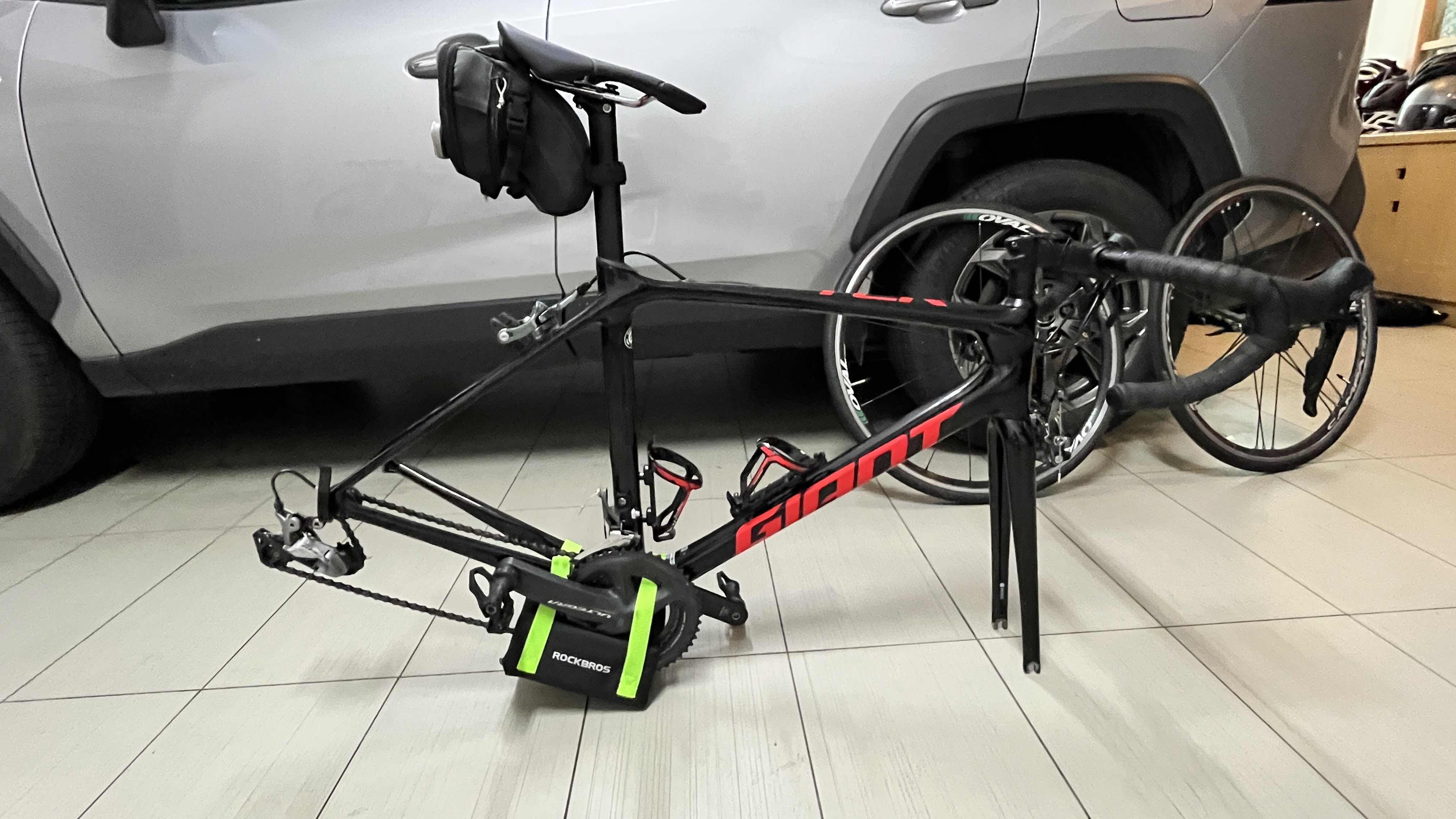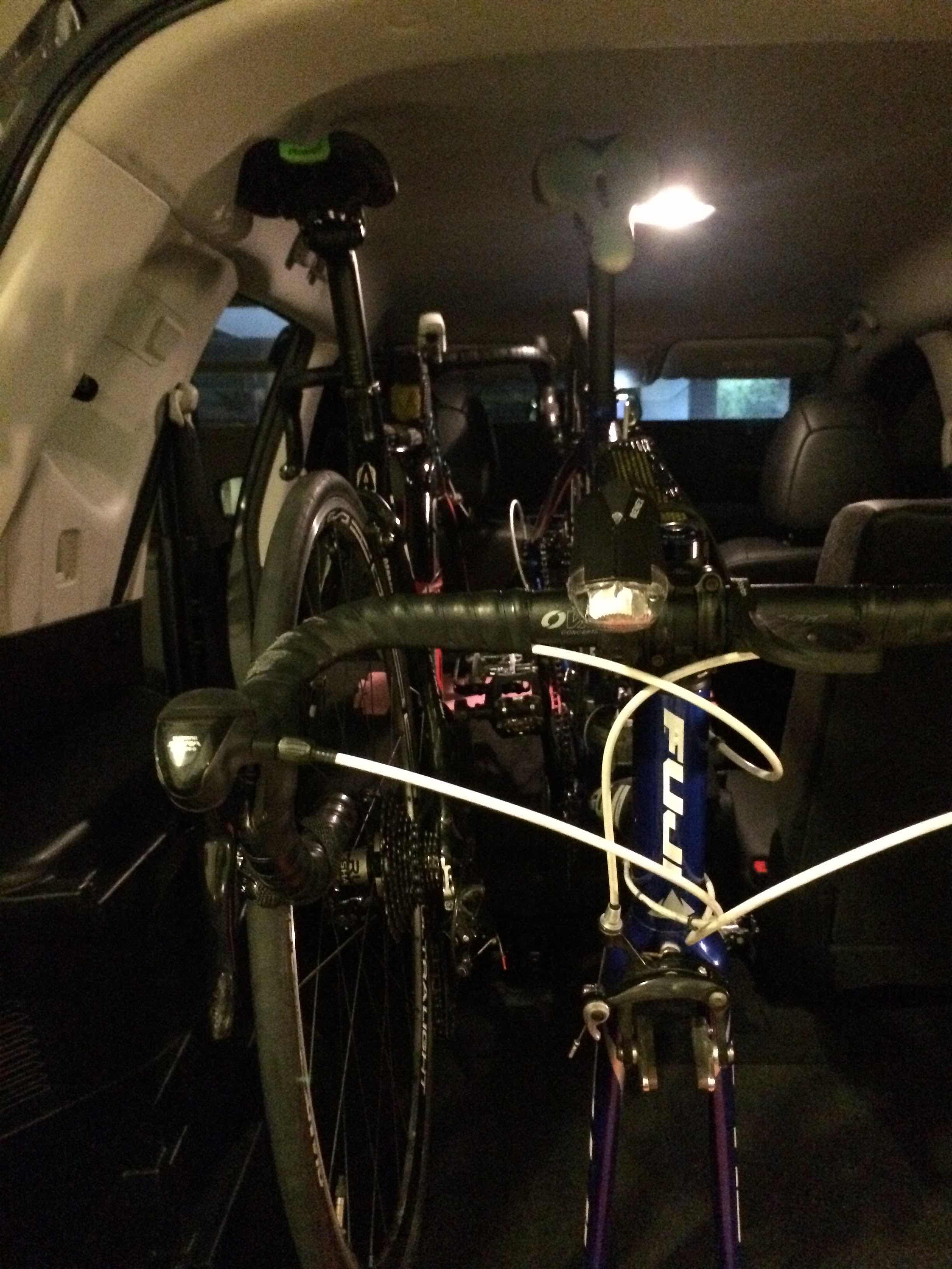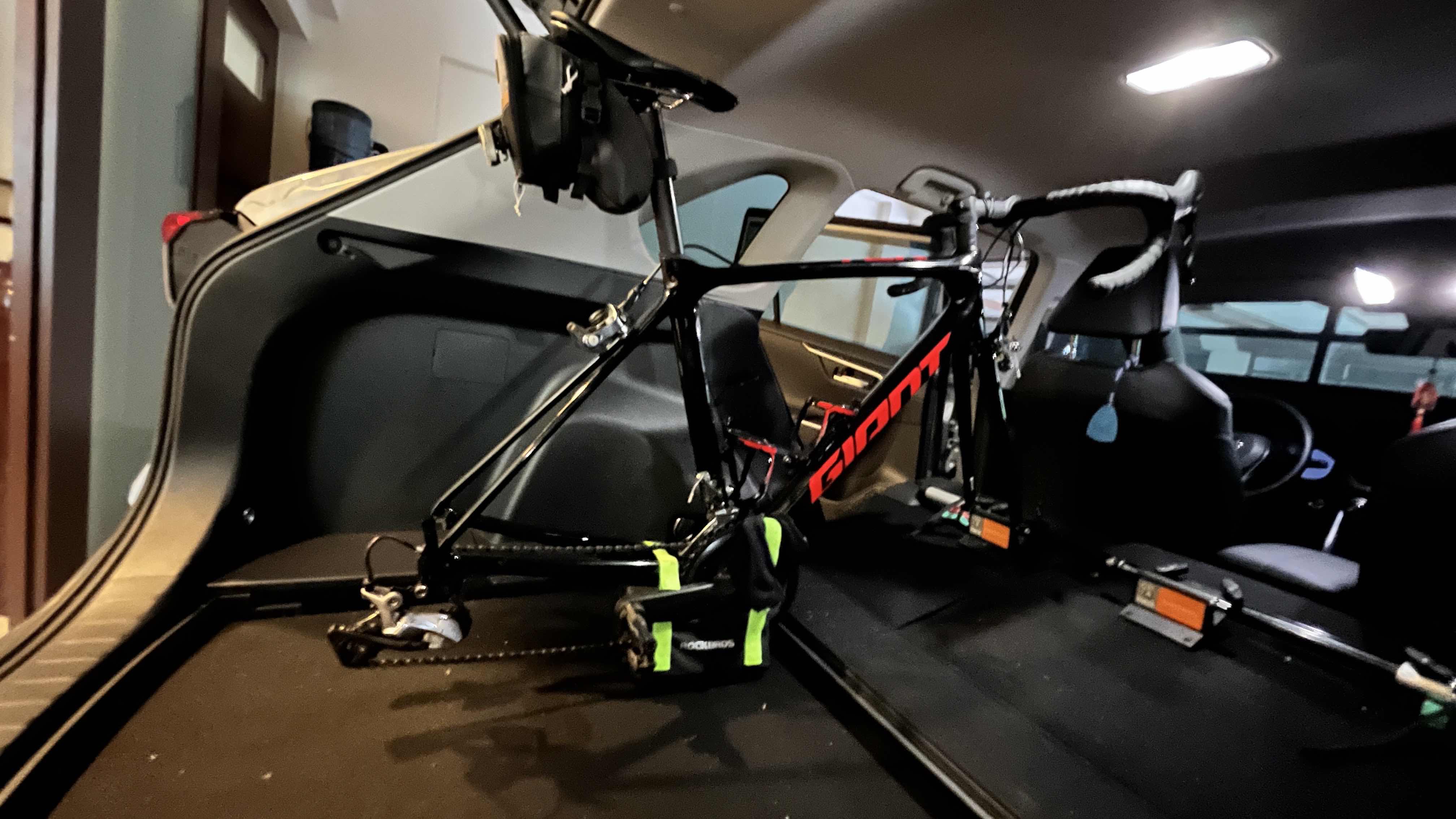 攜車架帶單車了,只能直接把後座打平,公路車直接躺在地板上。