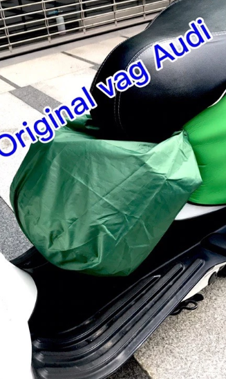 (5)捲捲安全帽套:可以捲起來,扣插扣在機車坐墊下。
