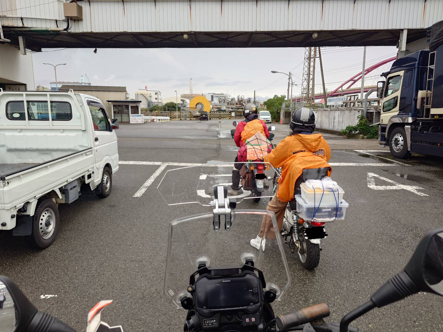 果然真的吹到歪掉,只好降個檔拉高轉速、騎快點車比較穩定