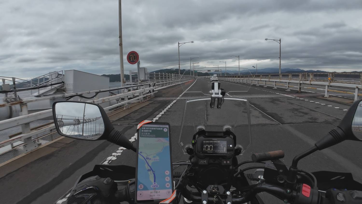 上橋時電子告示板寫說橋上風速 12m