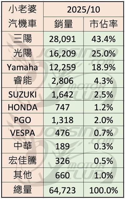 [情報] 2025年10月機車 車款及銷量的排名