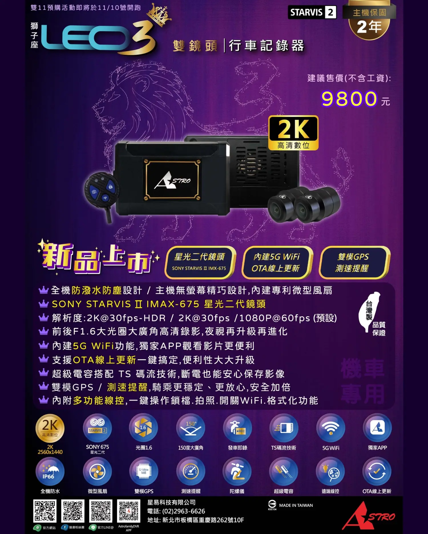 相比獅子座 3 多了停車監控功能,主機 IP67 防水 (獅子座主機 IP66),尺寸小了一點