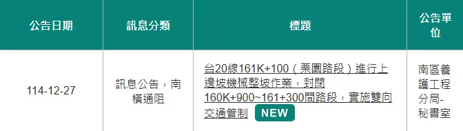 也可以點左邊的「最新消息」,在訊息分類裡面選「南橫通阻」後查詢