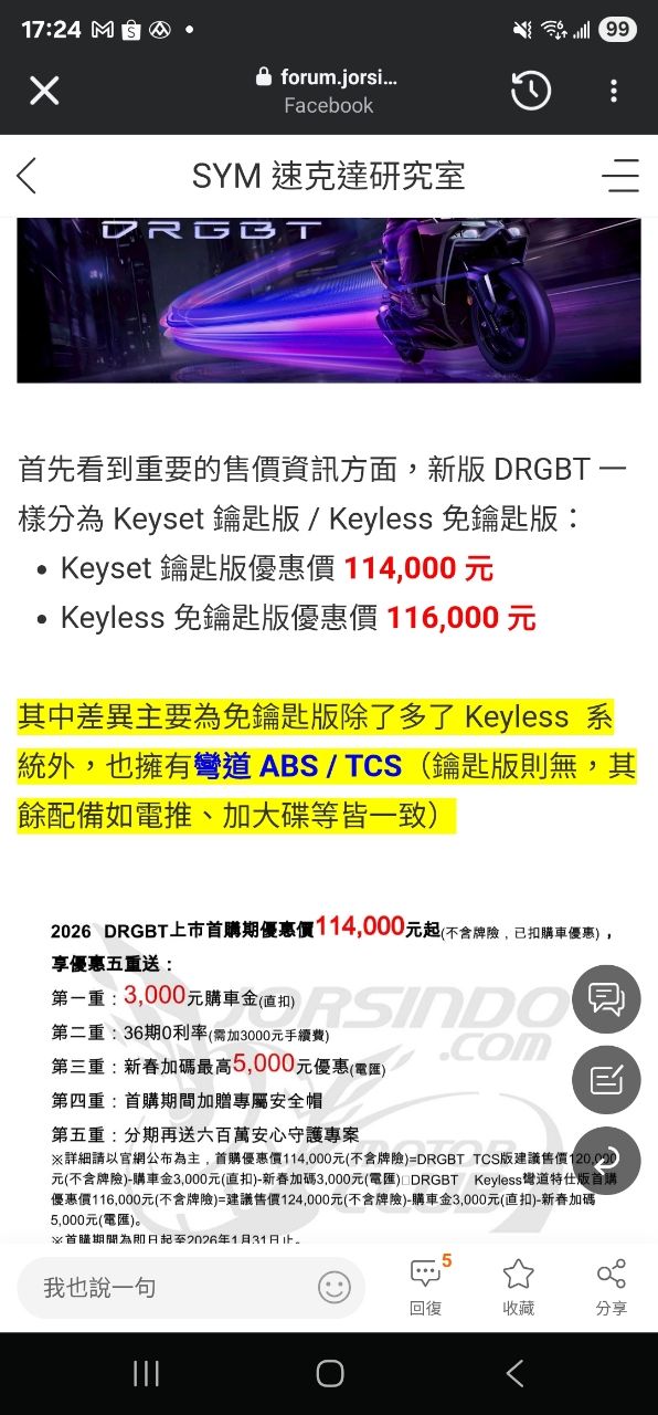 元(不含牌險)-購車金3,000元(直扣)-新春加碼3,000元(電匯);DRGBT Keyless彎道特仕版