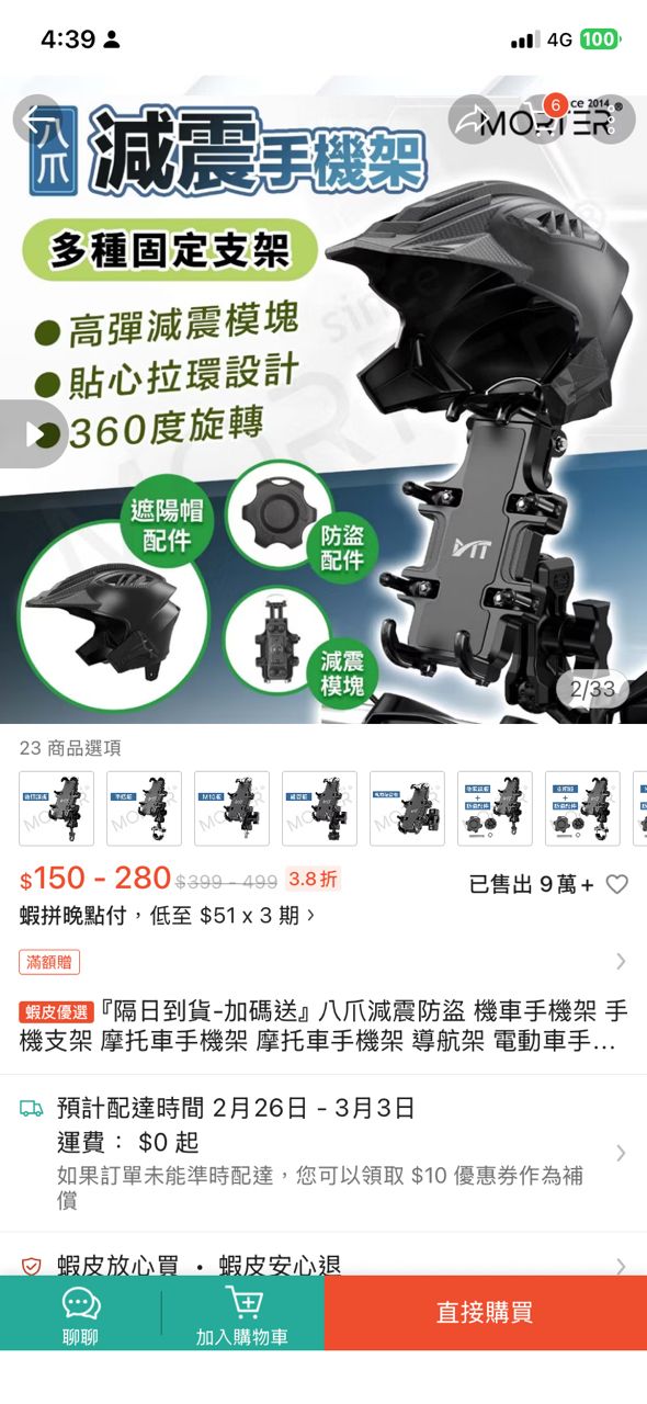 1 是MorTer 八爪減震防盜 機車手機架