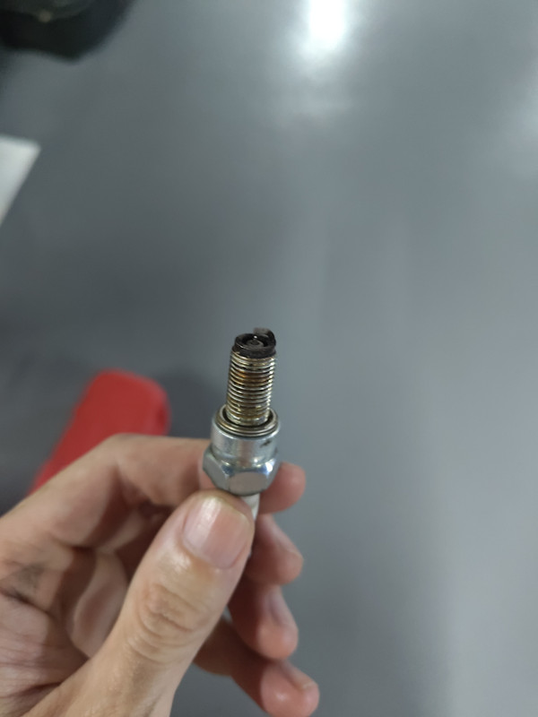 但火星塞上的積碳量是沒有使用紅線時這麼誇張