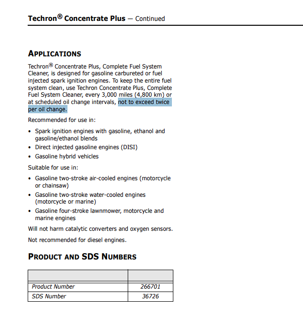 此汽油精有特別指示 一個換油週期不建議添加超過兩次