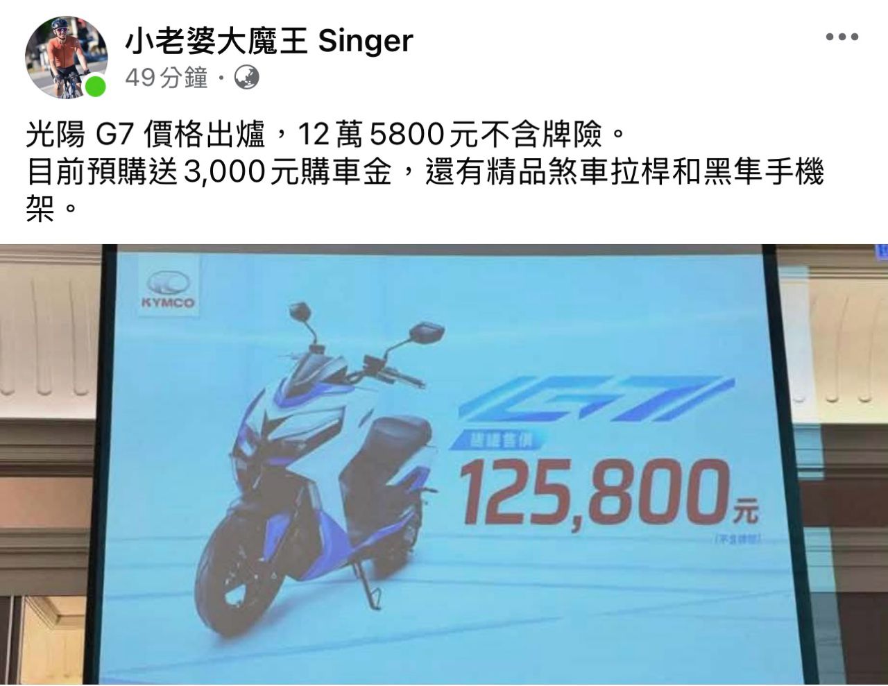 5.活動期間內預購 G7(SB35BA),並經由光陽機車代銷商完成預購系統登錄。