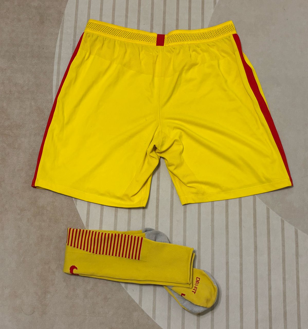 球褲球襪落場球員版買來就有實戰痕跡,球褲膠印隊徽,有鬆緊帶